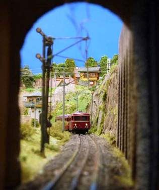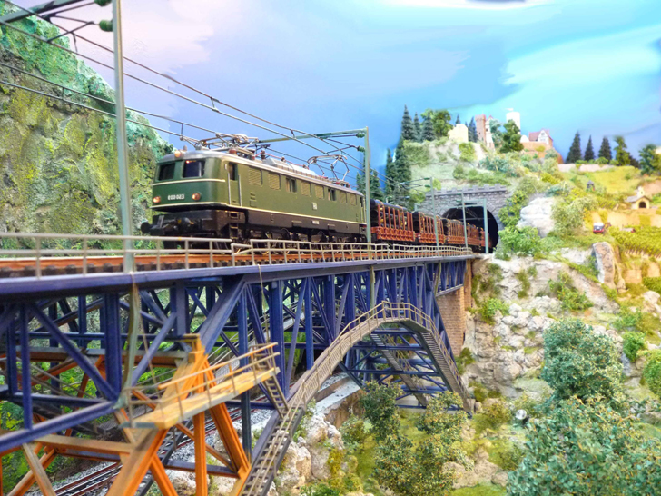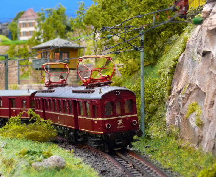 Ein Roco ET 85 zu Besuch auf Probefahrt an der 2009 neu entstandenen Blockstelle „Bastion“ |