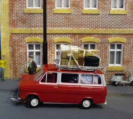 Oben rechts: „Istanbul Express“, ein FCS-Umbau, parkt vor einem Haus in der Straße am Betriebswerk. Dachträger und Ladung (Waschmaschine) sind Eigenbau. |