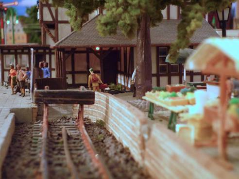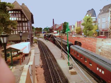 Mein Blick fällt von der Bahnhofsbrücke auf das Gleis 2, dort sehe ich sie im Abendlicht in den Bahnhof einfahren, die S3/6, oder BR18, wie sie jetzt heißt. Jetzt aber schnell über die Brücke und durch den kleinen Markt auf dem Bahnhofsvorplatz zum Bahnhof.